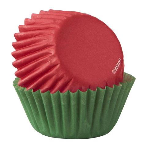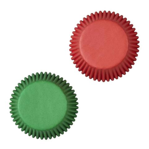 ICS8697 This pack of 50-Count Mini Red & Green Baking Cups is perfect for bite-sized holiday treats! They come in solid red and green colours for a festive look and are great for mini cupcakes and muffins as well as party snacks like nuts and candies.